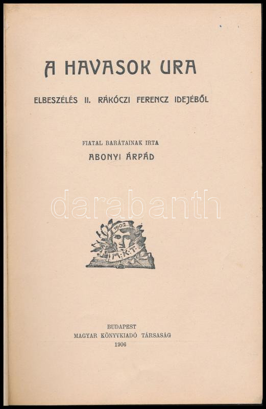 Abonyi Árpád: A havasok ura. Elbeszélések II. Rákóczi Ferenc idejéből. Bp., 1906., Athenaeum. Kiadói kiadói egészvászon kötésben, kopott borítóval, névbejegyzéssel.
