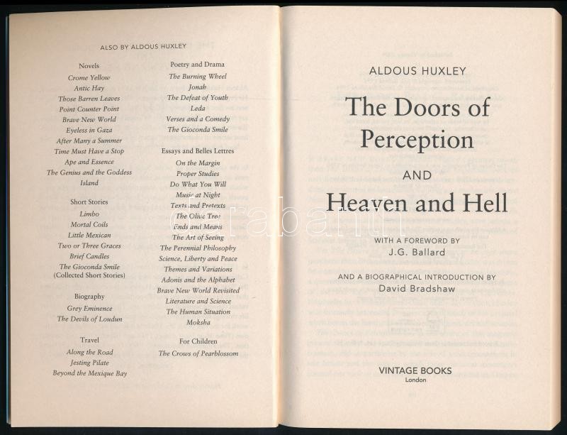 Aldous Huxley: The Doors of Perception and Heaven and HJell. With a foreword by J. G. Ballard and a biographical introduction by David Bradshaw. London, 2004., Vintage Books. Angol nyelven. Kiadói papírkötés.