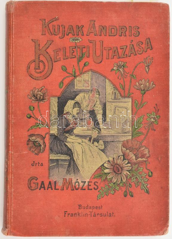 Gaal Mózes: Kujak Andris keleti utazása. Góró Lajos rajzaival illusztrált. Bp.,1900., Franklin, 231+1 p. Második kiadás. Kiadói aranyozott, festett, illusztrált egészvászon-kötés, kopott borítóval, a gerincen kis sérülésnyommal, hiányzó elülső szennylappal, foltos lapokkal, egy sérült lappal.