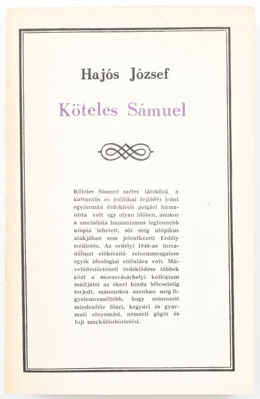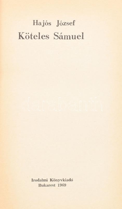 Hajós József: Köteles Sámuel. Bukarest, 1969, Irodalmi Könyvkiadó. Kia... https://www.darabanth.com/de/429-Fernauktion/429.0/Bucher/Bucher-Andere-kuriositaten~1000026/Hajos-Jozsef-Koteles-Samuel-Bukarest-1969-Irodalmi-Konyvkiado-Kiadoi-papirkotes-jo-~II2705181