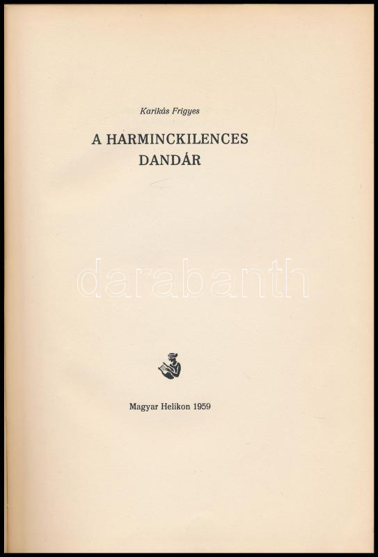 Karikás Frigyes: A harminckilences dandár. Kádár György egészoldalas illusztrációival. Bp., 1959, Magyar Helikon. Kiadói egészvászon-kötés. Megjelent 3200 példányban. Számozatlan példány.
