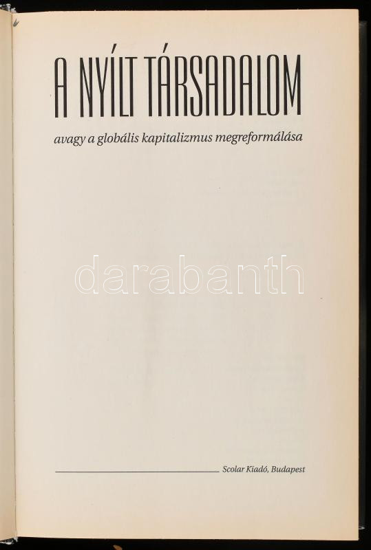 Soros György: A nyílt társadalom vagy a globális kapitalizmus megreformálása. Fordította: Nagy Mária. Bp., 2001, Scolar. Kiadói kartonált papírkötés, kiadói papír védőborítóban.