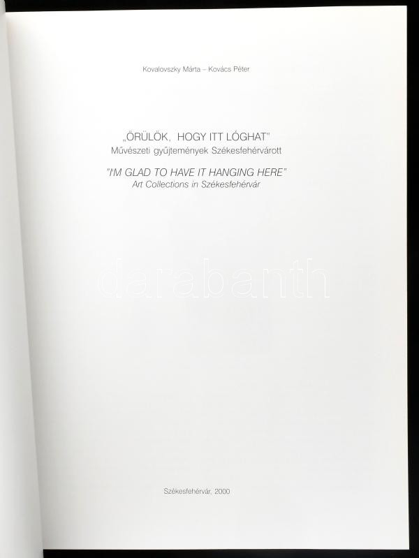 Kovalovszky Márta-Kovács Péter: "Örülök, hogy itt lóghat." Művészeti gyűjtemények Székesfehérvárott. Székesfehérvár, 2000, Szent István Király Múzeum. Gazdag képanyaggal illusztrált. Benne Csók István, Mednyánszky László, Farkas István, Ország Lili, Kondor Béla, Schaár Erzsébet, Lakner László, Jovánovics György, Deim Pál, Hajas Tibor, Nádler István, Hencze Tamás, El Kazovszkij, Fe Lugossy László, ef Zámbó István, Bukta Imre, Maurer Dóra, Bak Imre, Fehér László, Szikora Tamás és más neves kortárs magyar művészek. Kiadói papírkötés.