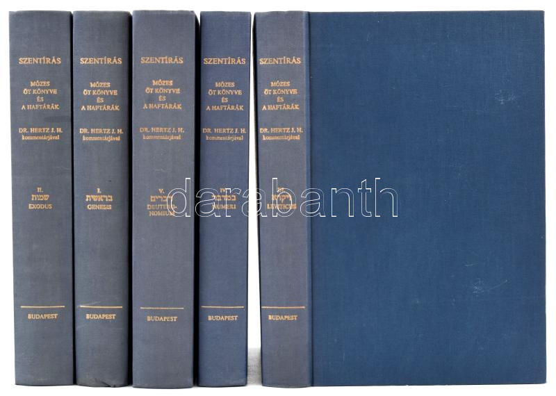 Mózes öt könyve és a Haftárák 5 kötetben. szerk dr. Hertz J. H. Bp., 1... https://www.darabanth.com/de/429-Fernauktion/429.0/Bucher/Bucher-Judaica~1000021/Mozes-ot-konyve-es-a-Haftarak-5-kotetben-szerk-dr-Hertz-J-H-Bp-1984-Kiadoi-egeszvas~II2747870