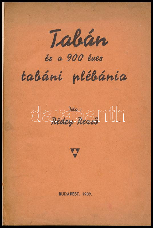 Rédey Rezső: Tabán és a 900 éves tabáni plébánia. Bp., 1939., [Balázs-ny.], 32 p. Egészoldalas képtáblákkal. Átkötött félvászon-kötés, bekötött papírborítókkal, 3 és fél sort kihúztak.