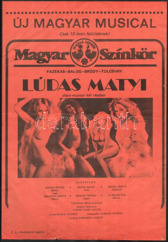 cca 1980 Fazekas-Balog-Bródy-Tolcsvay: Lúdas Matyi, új magyar musical,... https://www.darabanth.com/de/429-Fernauktion/429.0/Bucher/Plakat~1000003/cca-1980-Fazekas-Balog-Brody-Tolcsvay-Ludas-Matyi-uj-magyar-musical-Magyar-Szinkor-erotikus~II2749863