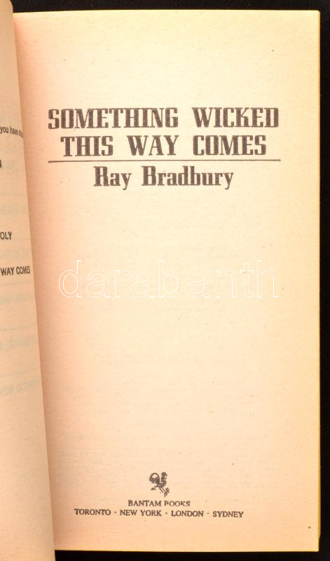 Ray Bradbury 2 műve: Pillars of Fire and Other Plays. For today, tomorrow and beyond tomorrow.; Something Wicked this Way Comes. New York,1975-1982,Bantam Books. Angol nyelven. Kiadói papírkötés.