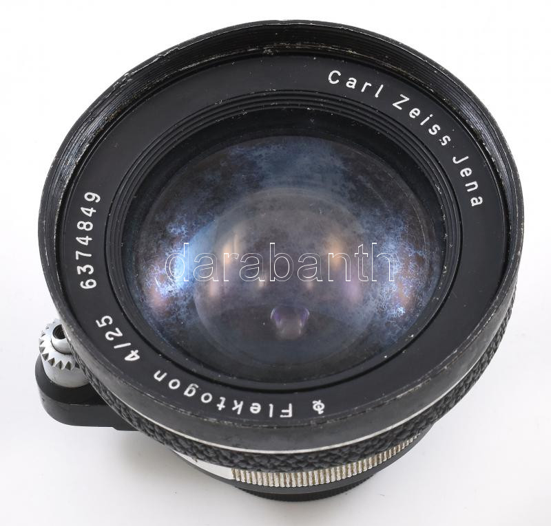 Carl Zeiss Flektogon 4/25-ös objektív bőr tokkal, Exacta bajonettes, működő állapotban, belül gombás d: 8 cm tokkal
