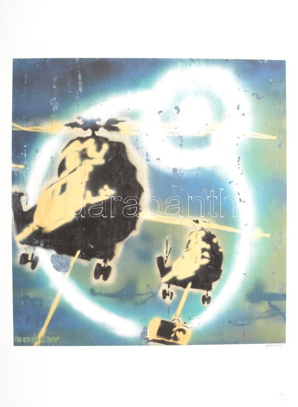 Beschreibung: Banksy: Helicopter. Ofszet litográfia, papír, jelzett a nyomaton, "POW Printmaking" szárazpecséttel Grafiart - Aviomar UK. tanúsítvánnyal Számozott: 71/150. Lapméret:70x50 cm, / Numbered, marked