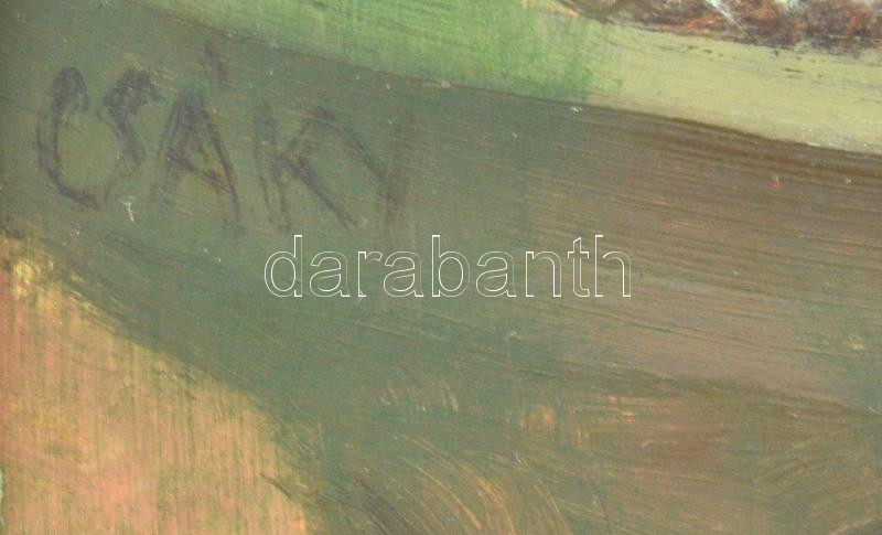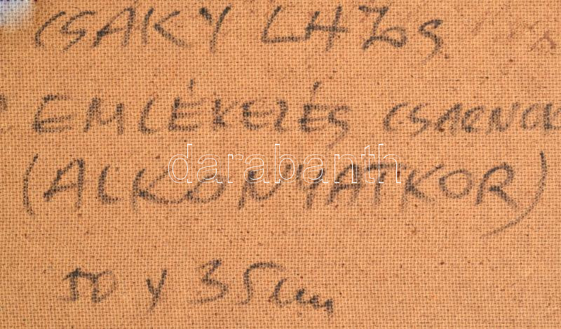 Beschreibung: Csáky Lajos (1950-): Az emlékezés csarnoka (alkonyatkor). Olaj, farost, jelzett, hátoldalán autográf felirattal. Fakeretben, 50×35 cm