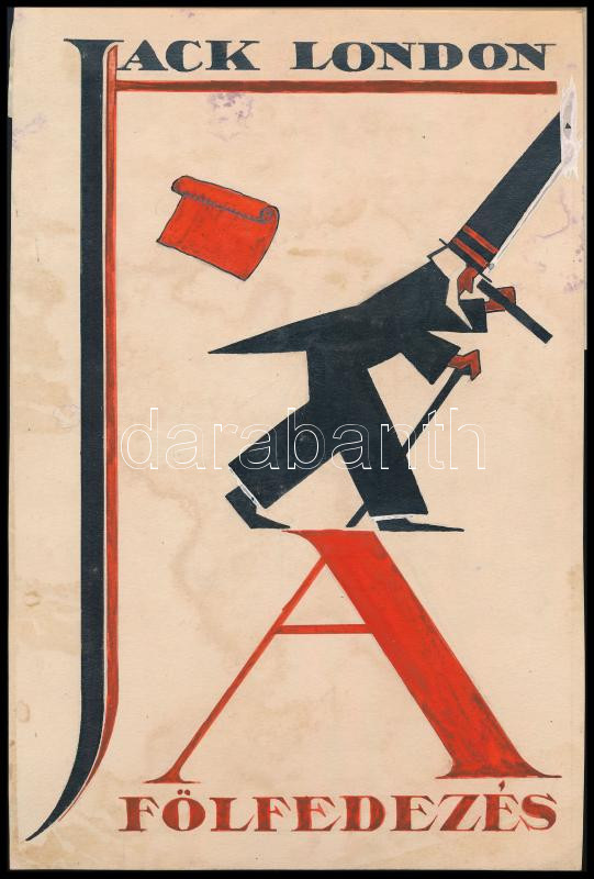 Galambos Margit (?-?): Art deco figura, Jack London A felfedezés c. könyvborítótervéhez, 1924. Tempera, ceruza, papír, hártyapapírral védve, jelzett a hártyapapíron, foltos, 20,5x14 cm.