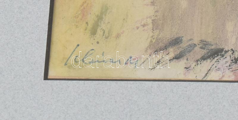 Beschreibung: Schéner Mihály (1923-2009): Csendéle. Akvarell, papír, jelzett. Üvegezett, dekoratív fakeretben. 23x34 cm