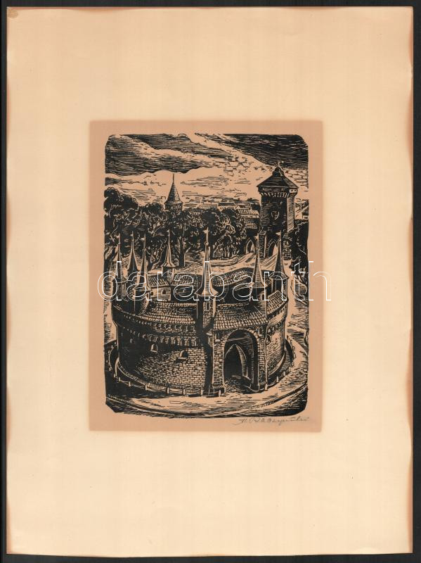 Stanislaw Raczynski (1890-1955): Krakkó (Kraków), 2 db linómetszet, papír, jelzettek, az egyiken kis lapszéli szakadásokkal, 23x16 cm (lapméret: 39x29 cm)