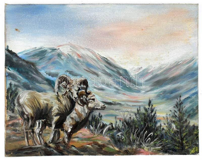 Jelzés nélkül: Hegyi táj muflonokkal. Olaj, vászon, kartonon, 28x36 cm https://www.darabanth.com/de/429-Fernauktion/429.0/Gemalde-und-Grafiken/Gemalde-und-Graphic-quot-signiertquot-quot-ohne-Signquot-~500002/Jelzes-nelkul-Hegyi-taj-muflonokkal-Olaj-vaszon-kartonon-28x36-cm~II2713632