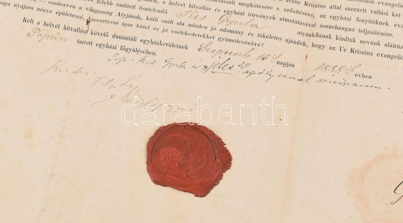 1888 Helvét egyháztanítói oklevél 50x80 cm https://www.darabanth.com/de/429-Fernauktion/429.0/Kunst-Dokumente-andere-Sammelgebiete/Dokument~500019/1888-Helvet-egyhaztanitoi-oklevel-50x80-cm~II2748203
