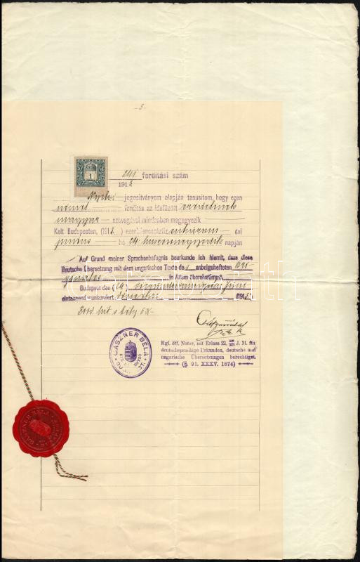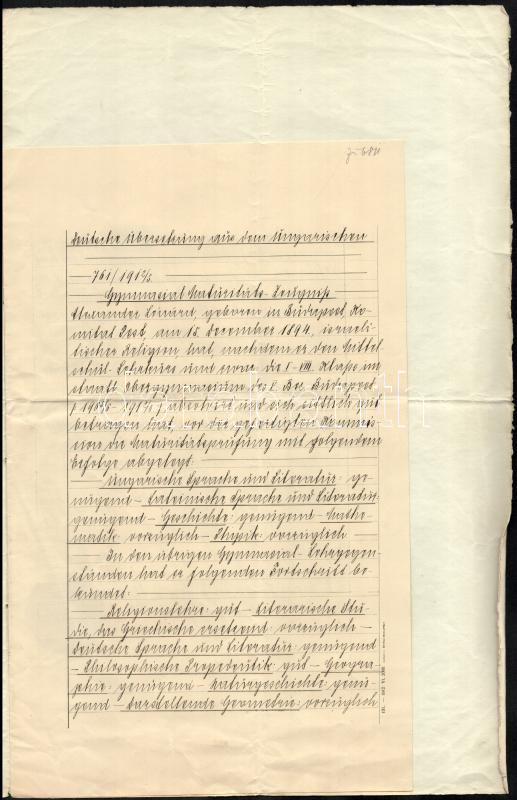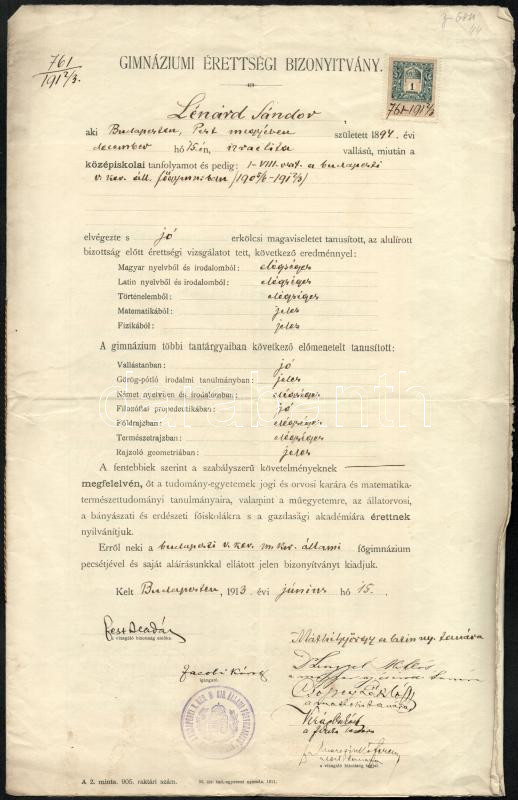 1913 Érettségi bizonyítvány okmánybélyeggel https://www.darabanth.com/de/429-Fernauktion/429.0/Kunst-Dokumente-andere-Sammelgebiete/Dokument~500019/1913-Erettsegi-bizonyitvany-okmanybelyeggel~II2756576
