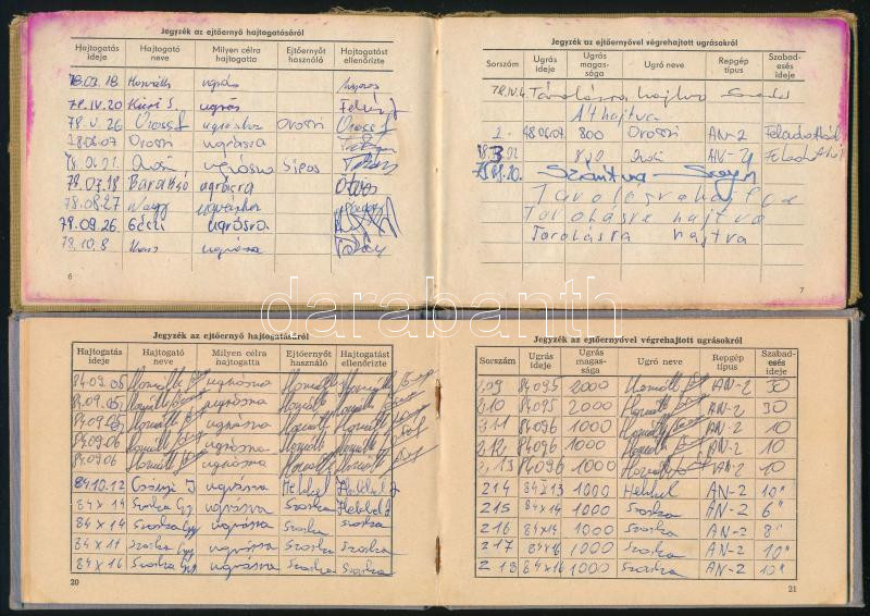 1976-1983 2 db ejtőernyős törzskönyv, sok bejegyzéssel, kissé viseltes https://www.darabanth.com/de/429-Fernauktion/429.0/Kunst-Dokumente-andere-Sammelgebiete/Dokument~500019/1976-1983-2-db-ejtoernyos-torzskonyv-sok-bejegyzessel-kisse-viseltes~II2750211