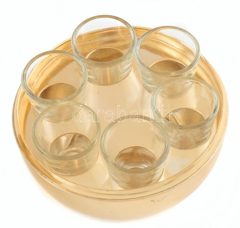 Beschreibung: Fém körte alakú likőrös készlet, kopott, m: 18 cm