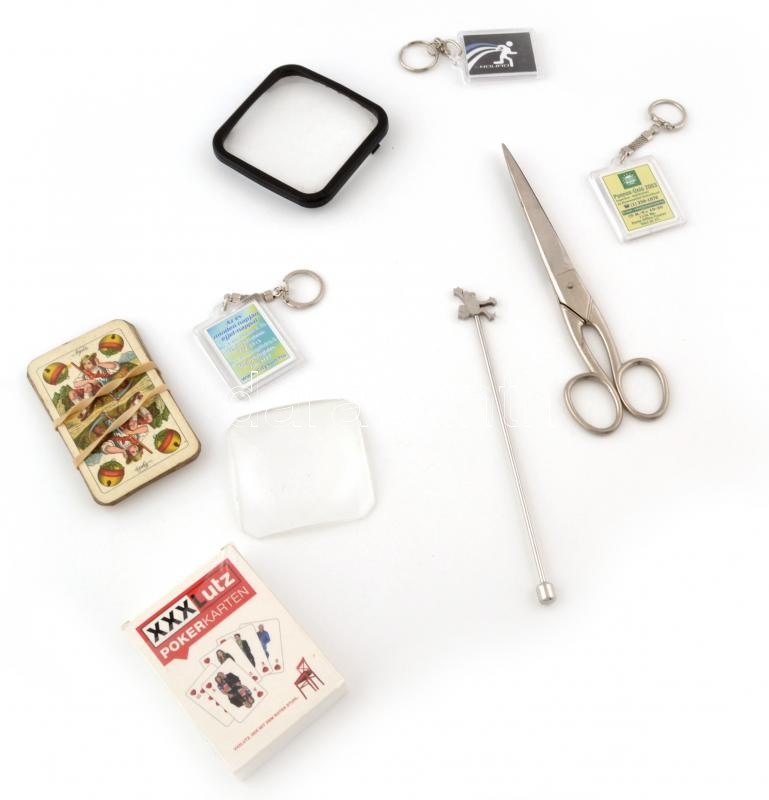 Kis bolhapiaci tétel (kártya, nagyító, olló, kulcstató) https://www.darabanth.com/de/429-Fernauktion/429.0/Kunst-Dokumente-andere-Sammelgebiete/Flohmarkt~500013/Kis-bolhapiaci-tetel-kartya-nagyito-ollo-kulcstato~II2713098