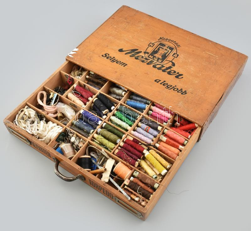 Régi varródoboz, tartalommal, 28x39cm https://www.darabanth.com/de/429-Fernauktion/429.0/Kunst-Dokumente-andere-Sammelgebiete/Flohmarkt~500013/Regi-varrodoboz-tartalommal-28x39cm~II2754874