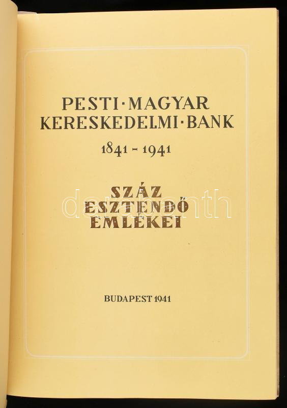 Pesti Magyar Kereskedelmi Bank 1841 - 1941. Száz esztendő emlékei. A bevezetőt dr. Lamotte Károly írta. Bp., 1941, Pesti Magyar Kereskedelmi Bank (Posner-ny.), 71 sztl. lev. + 2 (hasonmás) + 2 (térkép) t. Gazdag képanyaggal illusztrálva. Kiadói papírkötés. Benne két térkép-melléklet: Magyarország 1941 július havában - Az intézet vidéki fiók és leányintézeteinek hálózata, 29x41 cm + Az intézet fiókhálózata 1941-ben Budapest Székesfőváros területén, 56x29 cm. Szép állapotban. A térkép-mellékletek általában hiányoznak!