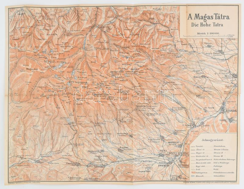 cca 1900-1910 A Magas Tátra. Die Hohe Tatra. Melléklet Singer és Wolfner kalauzaihoz. 1 : 100.000, Posner Károly Lajos és Fia térképészeti műintézete, 41x31,5 cm