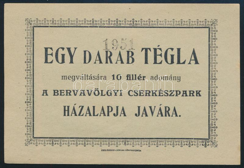 1 db tégla megváltására szóló 10 filléres értékjegy a bervavölgyi cser... https://www.darabanth.com/de/429-Fernauktion/429.0/Kunst-Dokumente-andere-Sammelgebiete/Pfadfinder~500027/1-db-tegla-megvaltasara-szolo-10-filleres-ertekjegy-a-bervavolgyi-cserkeszpark-hazalapja~II2756064