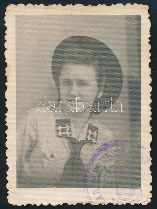 cca 1940 Cserkészlány fotója, pecséttel, 8×6 cm https://www.darabanth.com/de/429-Fernauktion/429.0/Kunst-Dokumente-andere-Sammelgebiete/Pfadfinder~500027/cca-1940-Cserkeszlany-fotoja-pecsettel-8C3976-cm~II2756529