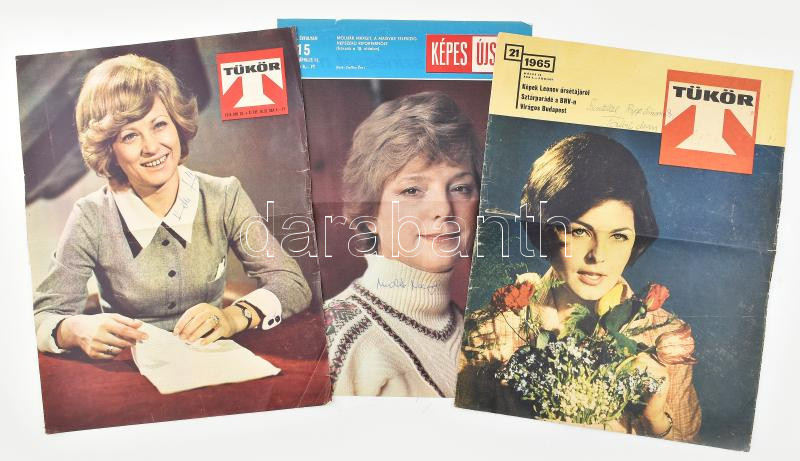 Beschreibung: 1965-1981 Takács Mari, Kudlik Júlia, Molnár Margit autográf aláírásai 3 db újság címlapon