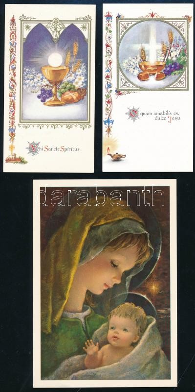 1990 Katona István (1928-) váci, később pedig egri segédpüspök autográf karácsonyi sorai és aláírása képespalon és 2 db kisebb méretű nyomtatvány Katona István püspökké szentelésének emlékére