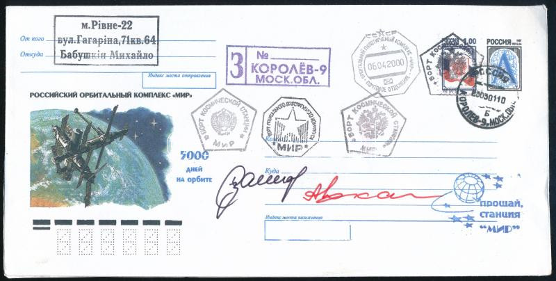 Signatures of Aleksandr Kaleri (1956- ), Sergei Zalyotin (1962- ) Russian astronauts on envelope