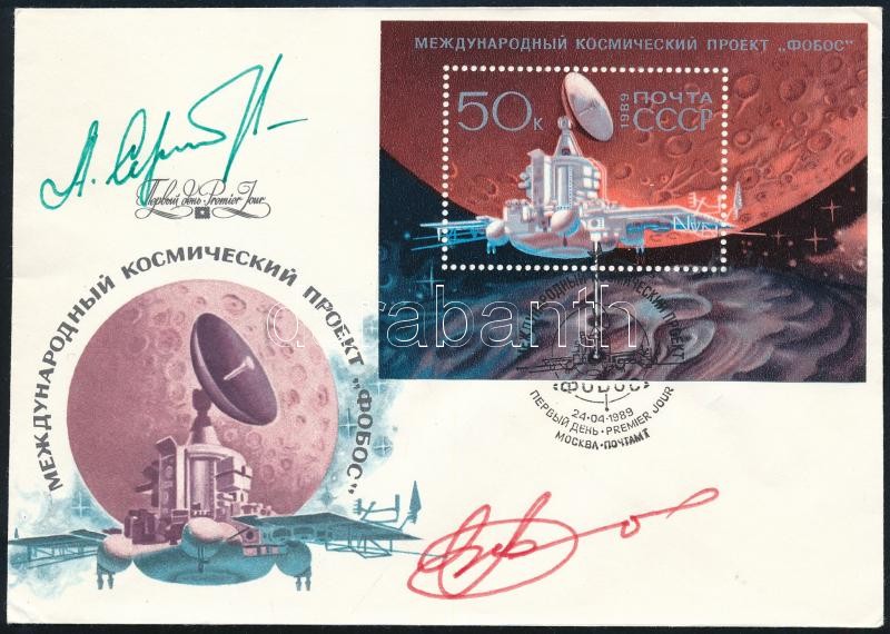 Alekszandr Viktorenko (1947- ) és Alekszandr Szerebrov (1944-2013) szovjet űrhajósok aláírásai emlékborítékon / Signatures of Aleksandr Viktorenko (1947- ) and Aleksandr Serebrov (1944-2013) Soviet astronauts on envelope