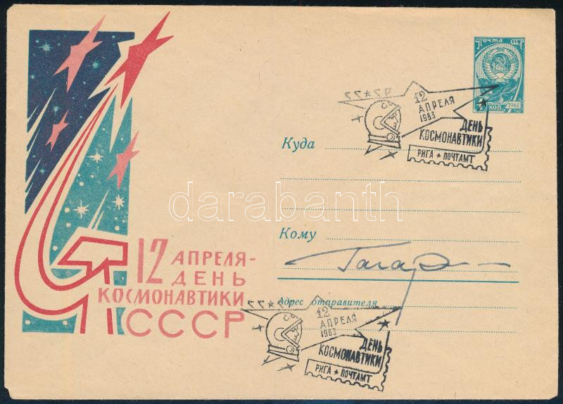 Jurij Alekszejevics Gagarin (1934-1968) szovjet űrhajós autográf aláírása alkalmi borítékon / Autograph signature of Yuriy Alekseyevich Gagarin (1934-1968) Soviet astronaut on special cover