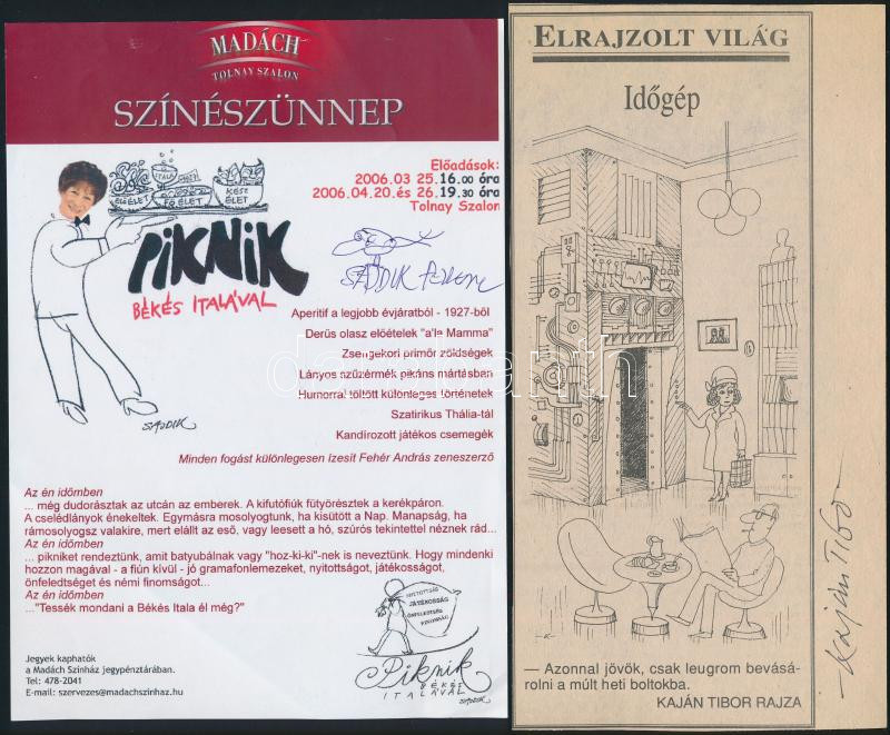 Beschreibung: Kaján Tibor és Sajdik Ferenc aláírásai saját karikatúrájukon, Sajdiknál kis rajzzal