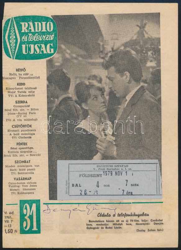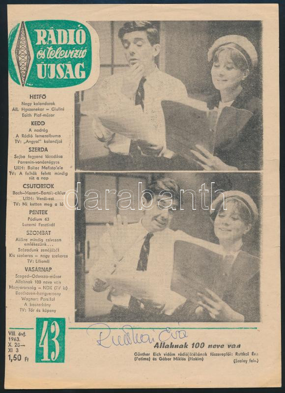 Ruttkai Éva, Váradi Hédi, Pap Éva, Felföldi Anikó, Demjén Gyöngyvér al... https://www.darabanth.com/de/429-Fernauktion/429.0/Kunst-Dokumente-andere-Sammelgebiete/Signatur~500021/Ruttkai-Eva-Varadi-Hedi-Pap-Eva-Felfoldi-Aniko-Demjen-Gyongyver-alairasai-oket-abr~II2756302