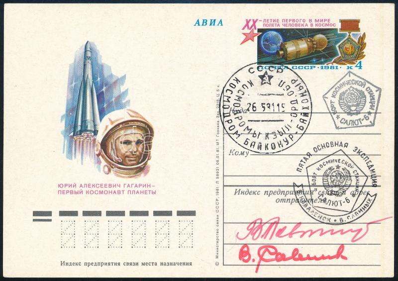 Vlagyimir Kovaljonok (1942- ), Viktor Szavinih (1940- ) szovjet űrhajósok aláírásai emlékborítékon / Signatures of Vladimir Kovalyonok (1942- ), Viktor Savinykh (1940- ) Soviet astronauts on envelope