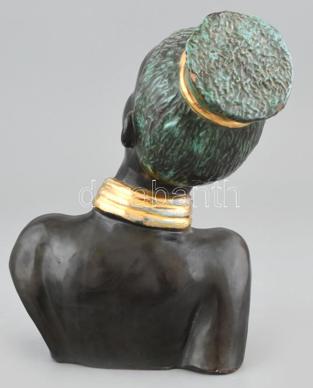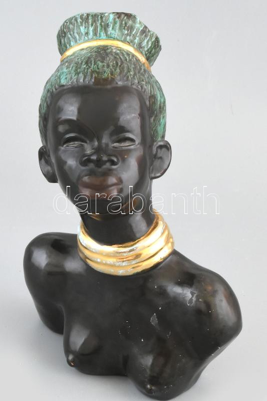 Izsépy Margit: Afrikai nő. Kerámia, Jelzés nélkül, minimális lepattanással, m: 24 cm