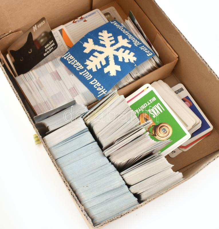 Beschreibung: Több ezer darab magyar, reklámos kártyanaptár, sok egyformával, összesen kb 10 féle.