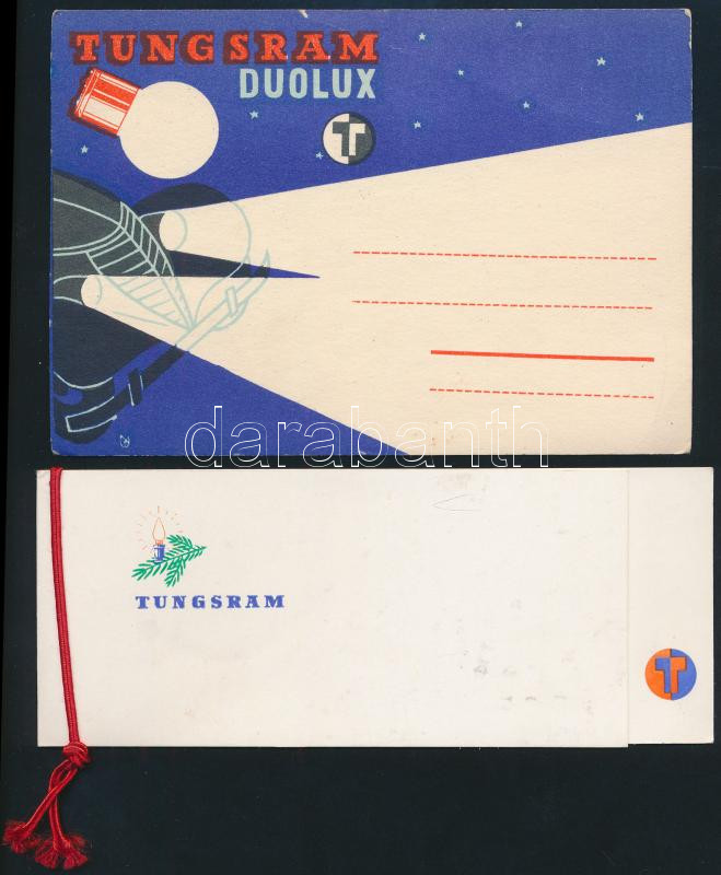 cca 1950-70 2 db Tungsram tétel: Tungsram Duolux reklámlap, 10,5x15 cm... https://www.darabanth.com/de/429-Fernauktion/429.0/Kunst-Dokumente-andere-Sammelgebiete/Werbungen~500023/cca-1950-70-2-db-Tungsram-tetel-Tungsram-Duolux-reklamlap-10-5x15-cm-plus-es-ujevi-udvozlo-kC3~II2750449