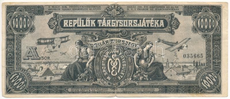 Beschreibung: 1926. "Magyar Sportrepülők Egyesülete - Repülők Tárgysorsjátéka - Dollár Sorsjegy" A sorozat T:III,III-