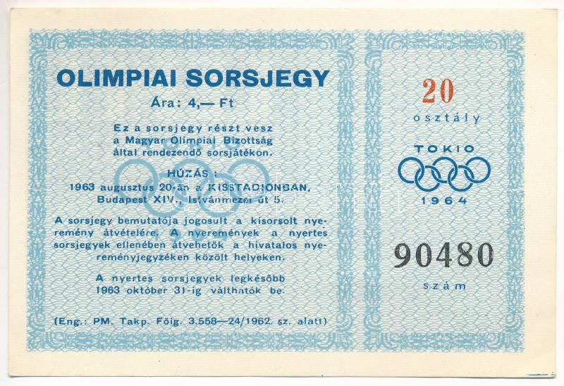 1963. "Olimpiai Sorsjegy - Tokio 1964" sorsjegy 4Ft értékben... https://www.darabanth.com/de/429-Fernauktion/429.0/Numismatik/Aktien-und-Tickets~2000007/1963-Olimpiai-Sorsjegy-Tokio-1964-sorsjegy-4Ft-ertekben-TI-~II2754420