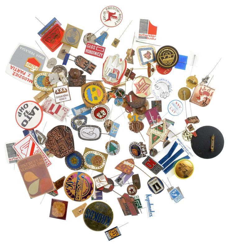 Lengyelország ~1970-1980. ~100db szocialista jelvény, közte zománcozott bronz és műanyag darabok is T:1-,2