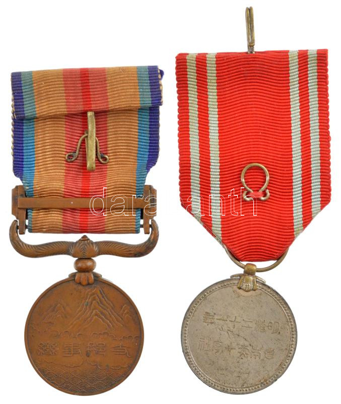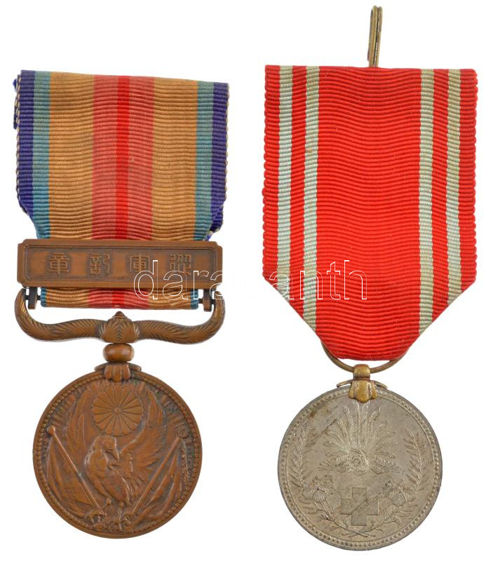 Japán 1937. "Kínai Incidens Háborús Érem" bronz kitüntetés mellszalagon + Japán ~1940-1945. "Császári Vöröskereszt" ezüstözött fém érem mellszalagon T:2,2-