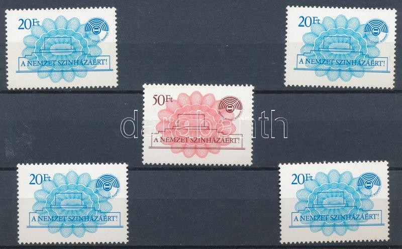 Beschreibung: "A Nemzeti Színházáért!" adománybélyeg 20Ft-os (4x) és 50Ft-os névértékkel