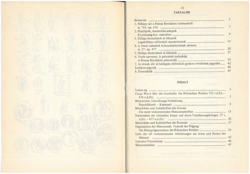 Bíróné Sey Katalin: Római pénzek. Bevezetés a római pénzek gyűjtésébe. Császárkor. Magyar Éremgyűjtők Egyesülete, Budapest, 1971. Használt, nagyon jó állapotban, a borító kissé megsárgult.