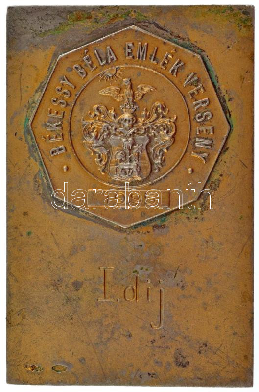 1925. "Békessy Béla Emlék Verseny - I. díj" kétoldalas, jelzett, aranyozott Ag díjplakett, "SGA" gyártói jelzéssel (59,96g/0.800/39x69mm) T:2 aranyozás kopott