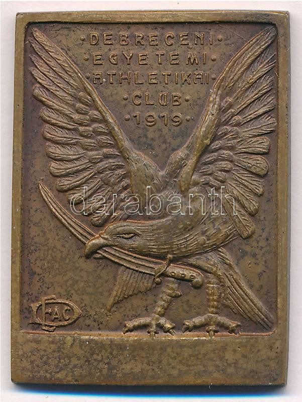 ~1920-1930. "Debreceni Egyetemi Athletikai Club 1919 - DEAC"... https://www.darabanth.com/de/429-Fernauktion/429.0/Numismatik/Sportpreise-und-Sportgedenkmedaillen~2000023/7E1920-1930-Debreceni-Egyetemi-Athletikai-Club-1919-DEAC-egyoldalas-bronz-plakett-42x31mm-T1-~II2754351