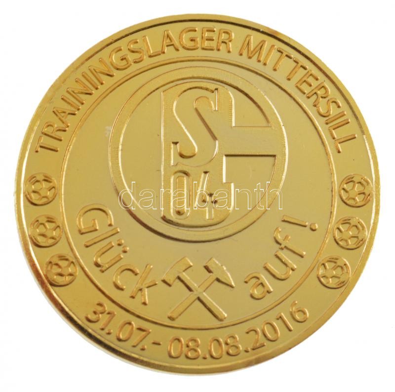 Németország 2016. "Schalke 04 - Jó szerencsét! - Edzőtábor Mittersillben" kétoldalas, aranyozott fém emlékérem a Schalke labdarúgócsapatának mittersilli edzőtáboráról, eredeti műanyag tokban (40mm) T:1