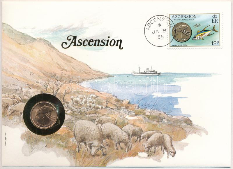 Ascension-sziget 1984. 1p bronz "II. Erzsébet" felbélyegzett borítékban, bélyegzéssel, német nyelvű leírással T:1 Ascension Island 1984. 1 Penny bronze "Elizabeth II" in envelope with stamp and cancellation, with German description C:UNC