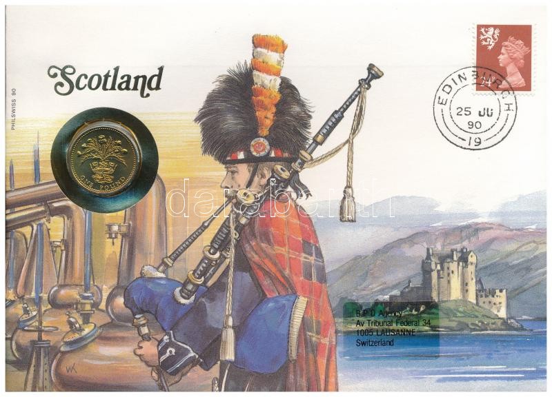 Great Britain 1989. 1 Pound in "Scotland" envelope with stamp and cancellation, with German description C:UNC